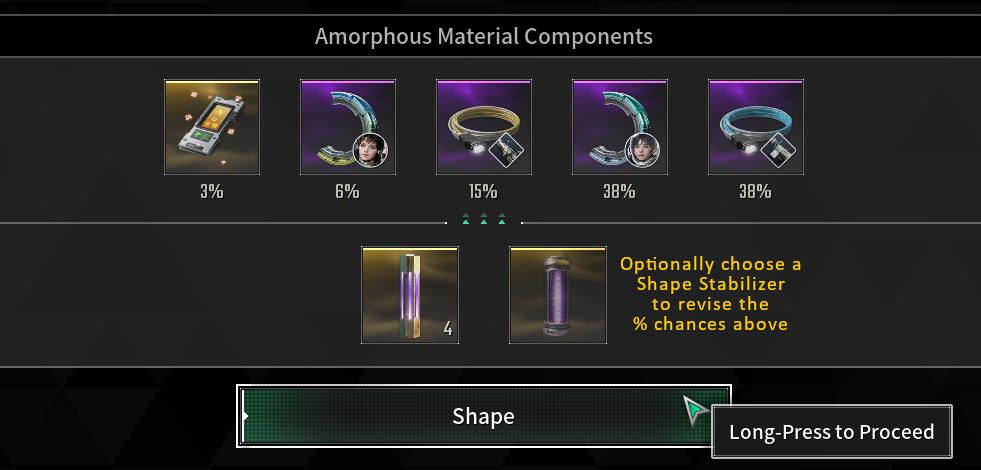 Shape Stabilizers can be used when converting an Amorphous Material, to give a better chance of acquiring the more rare blueprints.