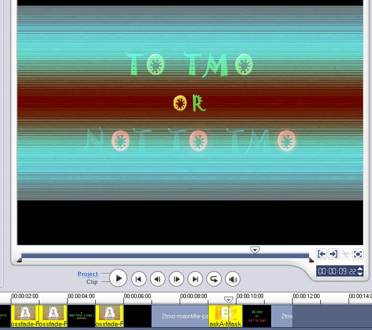 Once the spinning animation was complete, I converted it into an AVI (Audio-Video Interleave) movie file using VirtualDUB. I took this into Ulead VideoStudio, and used a Mask transition between this animation and the full title image.