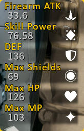 - Defense (DEF) helps reduce incoming damage from weapons.