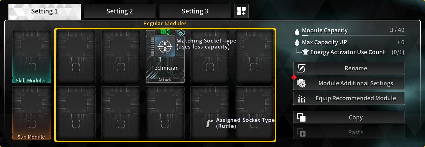- The special Sub Module socket increases module capacity. This socket is reserved for a variety of melee attack modules, or grappling hook modules.